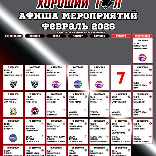 Помимо просмотра матчей любимых видов спорта, вы можете поучаствовать в тематических квиз-викторинах, послушать музыку, побывать на выступлении Stand Up, потанцевать и просто провести весело время в компании друзей!