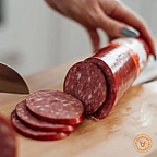 Колбасы и деликатесы от "Алейского Мясокомбината" - это нежное сочетание свежего охлаждённого мяса высшего сорта и ювелирно подобранного комплекса специй и пряностей по ГОСТу. И ничего лишнего!