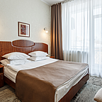 В каждом номере отеля: комфортные спальные места, ЖК ТВ, кондиционер, мини-бар, Wi-Fi. В числе доп. услуг визовая поддержка иностранных гостей, финская сауна с бассейном, парковка на внутреннем дворе отеля, прачечная, камера хранения, чистка обуви и пр.