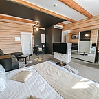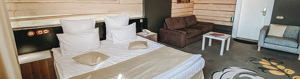 Небольшой номерной фонд в 14 номеров позволяют уделять максимальное внимание каждому гостю, в отеле нет места шуму и суете. Дизайн отеля выполнен в деревянном стиле с использованием самых современных технологий. В каждом номере кровать, зона отдыха, рабочая зона, ванная комната укомплектована современной сантехникой, махровым халатом и тапочками, а также набором косметических средств. В стоимость номера включен расширенный континентальный завтрак, Wi-Fi на всей территории отеля.