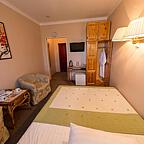 Разместиться предлагается в номерах различных категорий. К услугам гостей комфортные спальные комнаты и современные технические приборы. В стоимость проживания входят завтраки для всех категорий номеров.