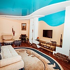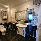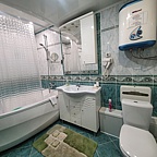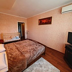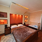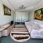 Номер представляет собой полноценную квартиру с прихожей, кухней, угловой ванной или душевой кабиной. Есть всё необходимое: микроволновая печь, чайник, холодильник, посуда, халат и тапочки, средства гигиены.