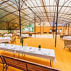 Летом открыта уютная веранда, на которой может разместиться до 250 гостей!