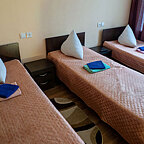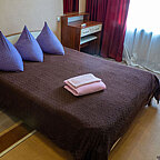 Выбирайте и бронируйте любой из 52 номеров, подходящий вам по цене и условиям проживания. Удобные номера со светлым интерьером, оснащенные всем необходимым для проживания: добротной мебелью, телевизором, телефоном, холодильником, электрочайником и набором посуды. Также во всех номерах есть обустроенные современной сантехникой ванные комнаты.