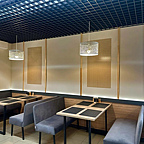 Интерьер заведения выполнен в стиле минимализма с элементами восточной культуры, создавая уютную атмосферу для отдыха и общения.
