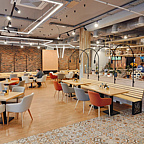 У нас можно быстро и сытно пообедать, поработать в комфорте или провести приятный вечер в уютной атмосфере и теплой компании друзей или семьи. Наслаждайтесь вкусной едой и общением, а также проводите банкеты и отмечайте любое торжество - у нас есть необходимое для Ваших праздников!