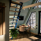 A-frame — это полноценный дом, который работает в любое время года. Наши дома выглядят сказочно, эстетично и фотогенично. Внутри — все продумано для уютного отдыха и комфортного проживания. Дома имеют открытую террасу, с которой открывается вид на лес и реку Томь. Рядом с домами оборудовано костровое место.