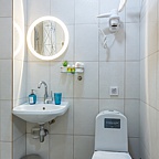 На этаже для гостей отеля есть кофе пойнт, где можно нагреть воду, попить чай или кофе. А этажом ниже можно позавтракать, пообедать и поужинать в недорогом кафе, которое также работает круглосуточно.