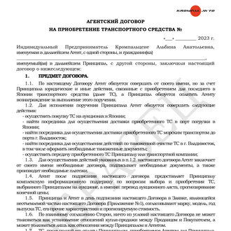 Агентский договор KROMPAL AVTO образец