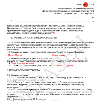 Дополнительное соглашение на перегон KROMPAL AVTO образец