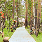 Экологически чистая окружающая среда, где воздух наполнен целебной свежестью, а из окон видны хвойные просторы и чистое озеро;