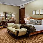 Отель предлагает гостям 300 просторных номеров и люксов, среди которых самый большой в России Королевский люкс площадью 490 кв. м, а также два великолепных ресторана: "OVO" – ресторан современной итальянской кухни, и "MEGUmi" – ресторан современной японской кухни.