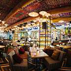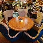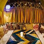 Особое внимание мы уделили интерьеру. Стена из посуды и кастрюль - это лишь декоративные элементы. Дизайнерский замысел еще глубже! Вся наша чайхана окутана трубами, по которой течет нефть. Конечно же мы не могли забыть о красочных восточных тканях и специальных дастарханах.