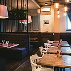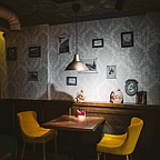 Интерьер зала стилизован под старинное заведение. Мы принимаем гостей на двух этажах. Наши залы обставлены мягкой мебелью и предметами искусства, стены украшены картинами местных художников, по желанию посетители могут приобрести понравившуюся картину, обратившись к администратору. Для деловых встреч отлично подойдет первый этаж, поделенный на несколько зон.