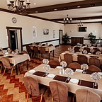 Интерьер ресторана сочетает в себе современный европейский дизайн, что делает его не только уютным, но и запоминающимся своей простотой, а продуманная планировка позволит удобно разместиться даже самой большой компании.