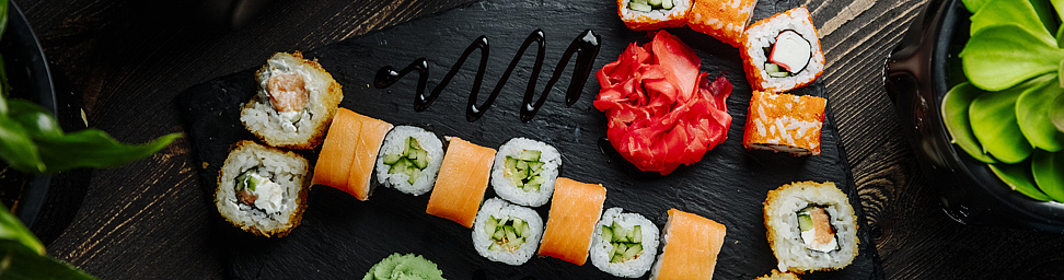 Преимущества - широкий ассортимент — более 100 видов суши и роллов, включая фирменные и сезонные предложения.