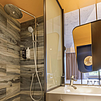 Ощущение космоса дарит любая локация нашего отеля: каждый из 96 номеров, лобби, ресторан и даже лифты.