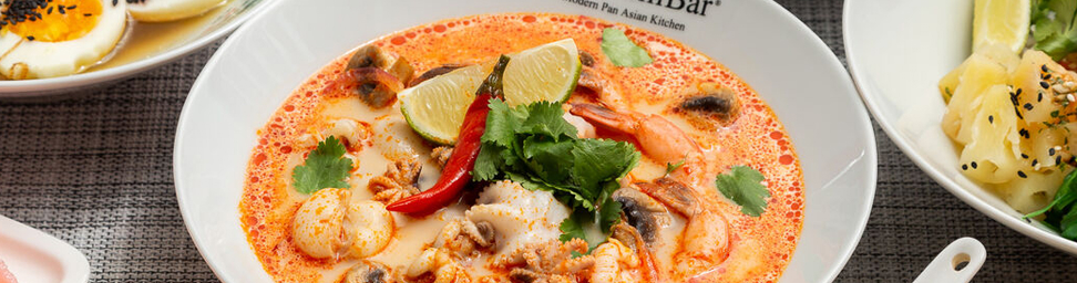 "TomYumBar" стал широко известен благодаря наиболее популярным блюдам современной азиатской кухни, адаптированным под вкусы самой широкой аудитории. И, конечно, лидером продаж является самый знаменитый суп в мире – Том Ям, представленный в 7 различных вариациях: от современной вегетарианской версии, до авторских.