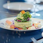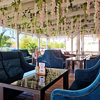 Богатое меню ресторана дополнено прекрасным дизайнерским интерьером, утопающим в роскоши зелени и света.