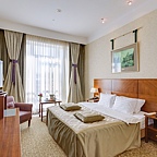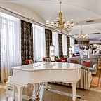 Интерьер отеля выдержан в стилистике модерна с элементами декора эпохи Петра I. Особенность стиля — стремление как к эстетической красоте, так и к функциональности.