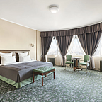 Просторные номера отеля оформлены в русском купеческом стиле. Во всех номерах бесплатный Wi-Fi, климат-контроль, TV, рабочий стол, сейф, чайная станция, мини-бар, просторная ванная комната, круглосуточный roomservice.