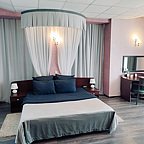 В гостиничный комплекс входят 104 номера, конференц-зал, 2 ресторана, кофейня и спортивный зал. В каждом номере оборудована рабочая зона: есть телефон, письменный стол, лампа для чтения, электронный сейф, кондиционер. Каждому гостю предоставляется персональный набор гигиенических принадлежностей: от расчески до лосьона для тела. Из отеля открывается вид на проспект Ленина, главную улицу города.