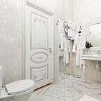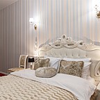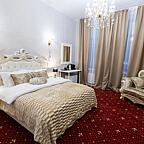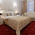 Просторные номера и люксы оборудованы комфортными зонами для работы и отдыха, панорамными окнами, мраморными ванными комнатами. Каждый номер снабжён всеми необходимыми гигиеническими средствами, комплиментарной водой, а также кофемашиной, чайником, утюгом и гладильной доской, сейфом и беспроводным доступом к сети интернет. Портьеры Blackout позволят выспаться гостям отеля даже в сезон Белых ночей. Хрустальные люстры украшают не только зоны ресепшн, коридоров и спален, но и каждую ванную комнату, что позволит каждому гостю почувствовать королевскую стать Петербурга.