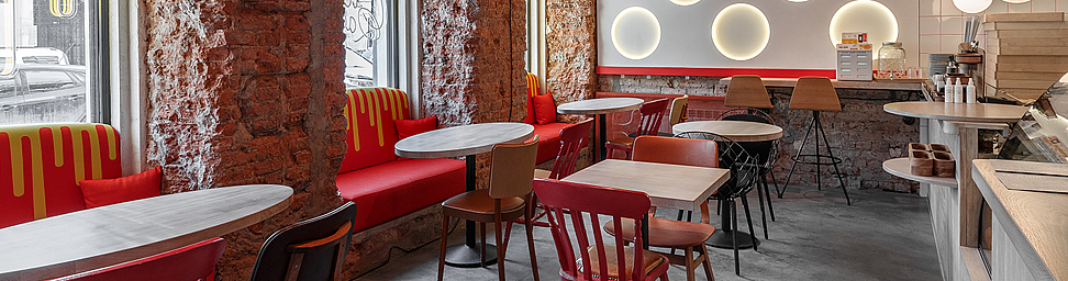 «Pizza Point» заняла небольшое помещение с открытой кухней. Здесь нет официантов, поэтому забирать заказ можно у барной стойки. Уют и открытость - вот преимущества пиццерии.