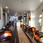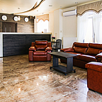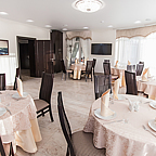 Утром постояльцы смогут выбрать любое блюда на свой вкус и выпить чашечку кофе, чая или сока в ресторане гостинцы, где сервируется завтрак.