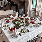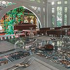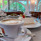 В ресторане изысканное авторское меню. Также ресторан проводит банкеты и осуществляют кейтеринг.