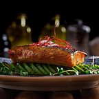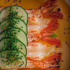 В меню ресторана представлено более 15 разделов с рыбой и морепродуктами. Главная фишка ресторана открытая кухня, где любой гость может увидеть, как готовят повара.