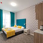 Мы постарались создать все условия для комфортного проживания: номера оснащены кухней, современной мебелью и сантехникой, подключены к Wi-Fi и интерактивному телевидению.