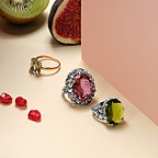 Большой выбор колец, браслетов, серег со вставками полудрагоценных и драгоценных камней.