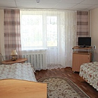 • Размещение в двухместных номерах "Стандарт", двухкомнатных номерах "Полулюкс", трехкомнатном номере "Люкс" с удобствами в номере;