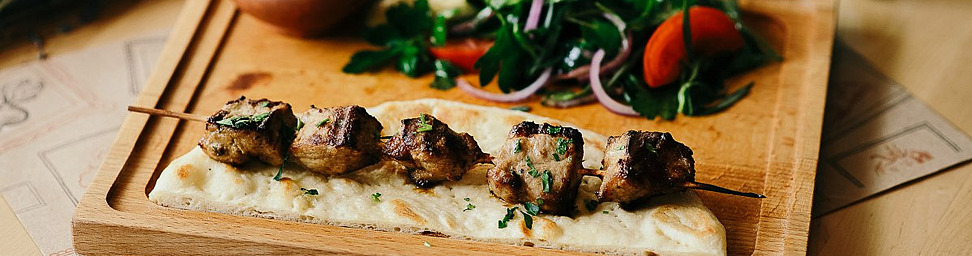 Помимо традиционных хитов грузинской кухни: нежнейших сациви, острых лобио и, конечно же, фирменных чебуреков и хачапури, предлагаем попробовать всеми любимые блюда русской кухни: наваристый борщ со сметаной, столичный салат с раковыми шейками, аппетитное жаркое из телятины и сочная отбивая с картофельным пюре.