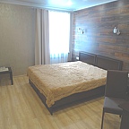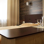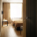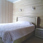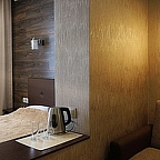 Мы предоставляем номера трех категорий "полулюкс" - с двуспальной кроватью и удобным диваном, "стандарт" - с двумя односпальными кроватями, "люкс" с огромной двуспальной кроватью. В каждом номере есть шкаф для одежды, прикроватная тумбочка, рабочая зона, холодильник, чайник и телевизор.