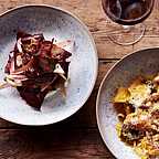 "Стейк" является воплощением спокойствия, доброжелательности, комфорта и великолепной атмосферы современного города. Шеф-повар создает сбалансированное меню на обед и ужин, в котором классика сочетается с современной вкусовой палитрой, включающей такие блюда, как вок и овощи на гриле.