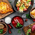 В исполнении поваров с Кавказа блюда полностью сохраняют свою аутентичность. Меню регулярно пополняется новыми рецептами, но вне зависимости от времени суток и сезона Вы всегда сможете попробовать «тот самый» освежающий айран, несколько видов пхали, сытную бастурму и сациви, пикантную долму и лобио. Не обойдется и без королей кавказского стола — шашлыков.