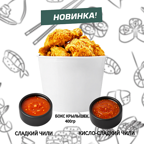 Теперь и у нас сочные куриные крылышки в хрустящей панировке, а если любите острое, то возьмите два новых 🌶️ соуса "Кисло-сладкий Чили" и "Сладкий Чили"