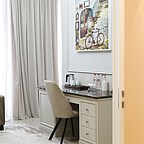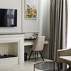 Особое внимание уделено интерьеру, в пространстве отеля идеально сочетаются элементы дизайнерской мебели, декора и качественных материалов отделки. Основа – светлые тона и натуральные фактуры и материалы.