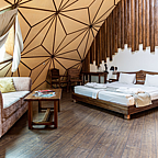 На территории парк-отеля есть ресторан, баня, небольшой отель, рыбацкий домик, контактный зоопарк и парковка под видеонаблюдением. Для отдыха гостей в комплексе предусмотрено все - от различных озер для рыбной ловли и охотничьего хозяйства до пляжных и зимних забав для всей семьи!