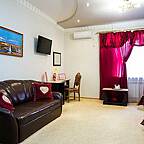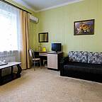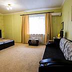 Номерной фонд гостевого дома: номера категории "Эконом", "Стандарт", "Комфорт", "Люкс" и "Люкс Плюс". Все номера европейского уровня, в которых: система кондиционирования и отопления, система шумозащиты, современная корпусная и мягкая мебель из чистых экологических материалов, телевизор, телефон, Wi-Fi. К вашим услугам средства гигиены, полотенца и тапочки. Также в гостинице Вы сможете отдохнуть в сауне.