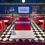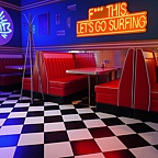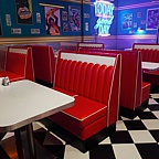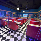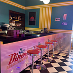 "The Diner" - закусочная в американском стиле. Внутри создается уютная атмосфера с яркими постерами на стенах, красными диванами и клетчатым полом. Меню включает: горячие блюда, супы, пасту, сэндвичи, гамбургеры, салаты, напитки и десерты.