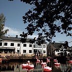 Красивая летняя веранда с видом на озеро и выходом к воде прекрасно дополняет это пространство и привлекает сюда гостей.