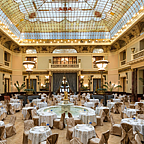 Единственный в своем роде зал был свидетелем многих исторических событий, сыгравших важную роль в русской истории и культуре. Витражный купол, мраморный фонтан, монументальные светильники и камерная сцена делают его лучшим местом Москвы для грандиозных торжеств. Традиции проведения банкетов, свадеб, встреч на высшем уровне в этом ресторане уже более ста лет. Здесь проходят крупнейшие светские события города, свадебные банкеты на 250 гостей, фуршеты, концерты, показы мод. Для каждого мероприятия составляется авторское меню от бренд-шефа отеля Андрея Шмакова.