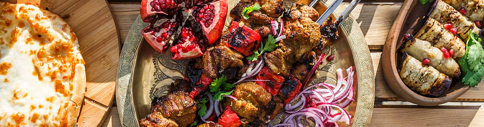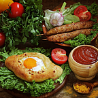 В меню нашего ресторана широкий ассортимент блюд восточной и европейской кухни – от настоящей сочной долмы до исконно русских блинов, от знаменитого салата «цезарь» до ароматного саджа, от сытных кутабов и хачапури до классической наваристой солянки.
