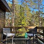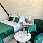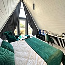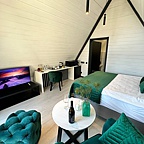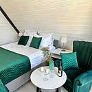 Все коттеджи с панорамными окнами. Интерьеры выполнены с использованием природных текстур дерева и камня.