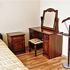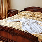 — 3 двухкомнатных люкса (гостиная, спальня и ванная комната). Оснащение номера включает в себя LCD-телевизор, кондиционер, холодильник, чайник, набор посуды, фен. Номер комплектуется халатом и тапочками.