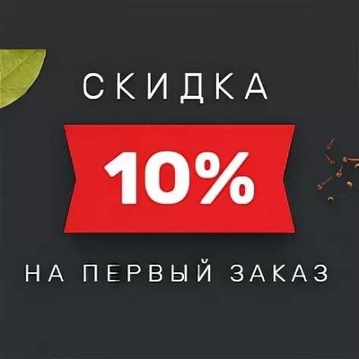 Скидка 10 % на весь чек Доступна всем клиентам За первый заказ
