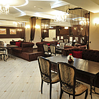 Атмосферу непринужденности, располагающую к отдыху, создают эффектный, но в то же время ненавязчивый и приятный глазу интерьер, выдержанный в классическом стиле: мягкие диваны и кресла, массивные столы. В декоре преобладают спокойные оттенки бежевого и коричневого цветов. Расположиться Вы можете в основном зале или на невысоком подиуме. Для Вас так же работают три оригинальных зала, каждый из которых оформлен в особенном цвете, с вместимостью до 15 человек.